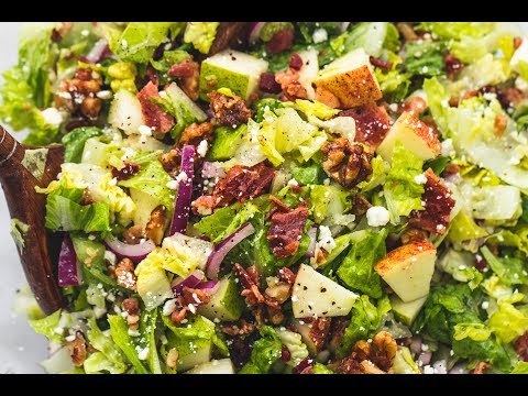 Chopped Autumn Salad with Apple Cider Dressing - Autumn Apple Salad Cream Cheese - Fresh, chopped Autumn salad with apple cider dressing has crunchy candied cinnamon pecans, apples, pears, bacon and feta cheese, all tossed in a sweet and ...