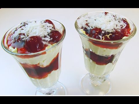 Cherry Cheesecake Parfait }}- Betty demonstrates how to make Cherry Cheesecake Parfait. This is a gorgeous dessert with cheesecake and cherry pie filling layers, topped with flaked, ...