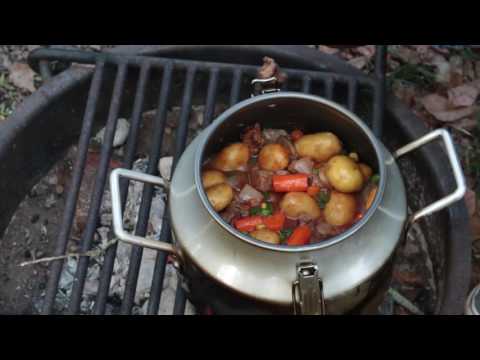 Beef And Vegetable Stew Cabin Cooking In The CanCooker Jr Campfire Goodness - Can Cooker Steak Recipe - Cabin vacation trip.